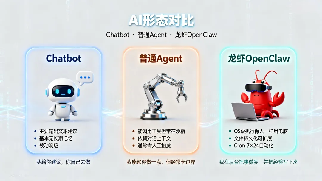 在ChatGPT定义了"一个输入框,你打字,它回复"的行业标准三年后,OpenClaw做了一件看似简单却极具颠覆性的事:让AI从"能说"变成"能做"。