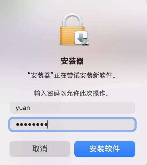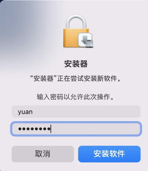 8.输入你的电脑开机密码,点击安装软件。