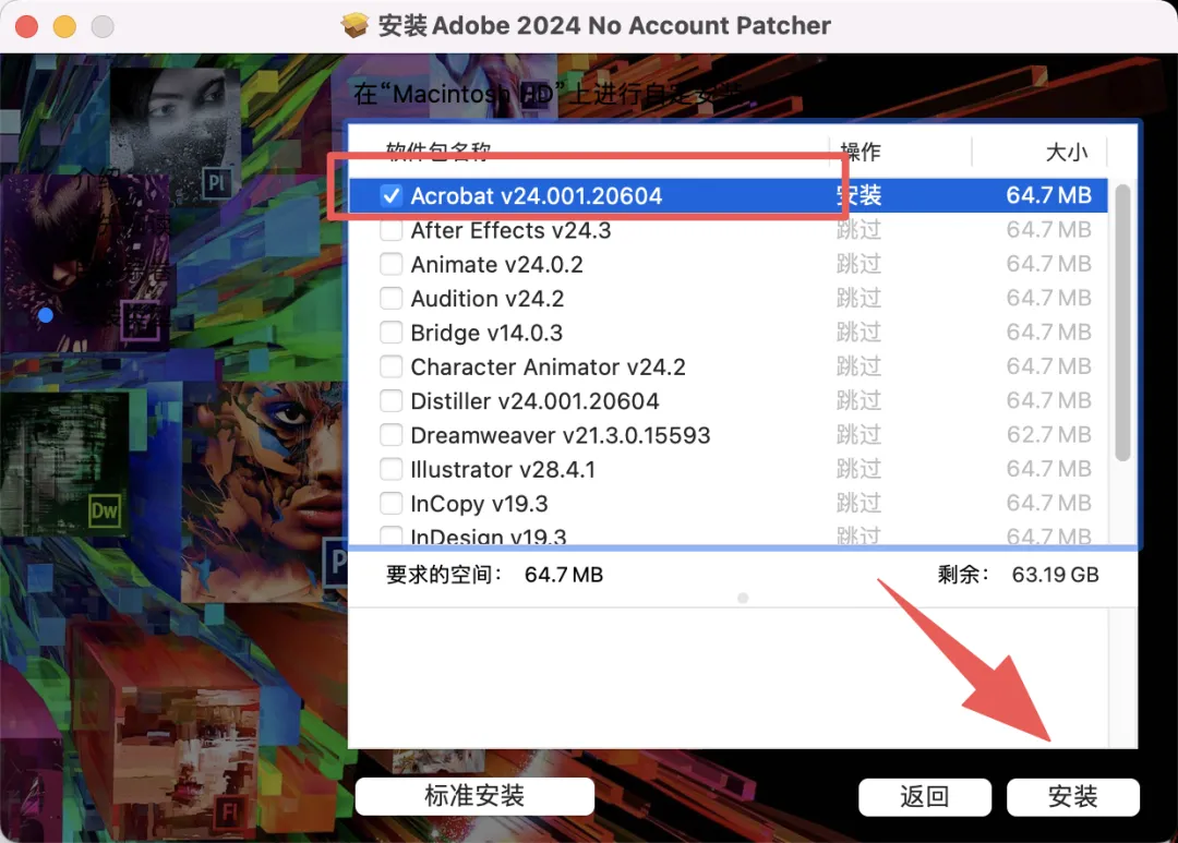 14.勾选软件包名称【Acrobat…】点击安装。