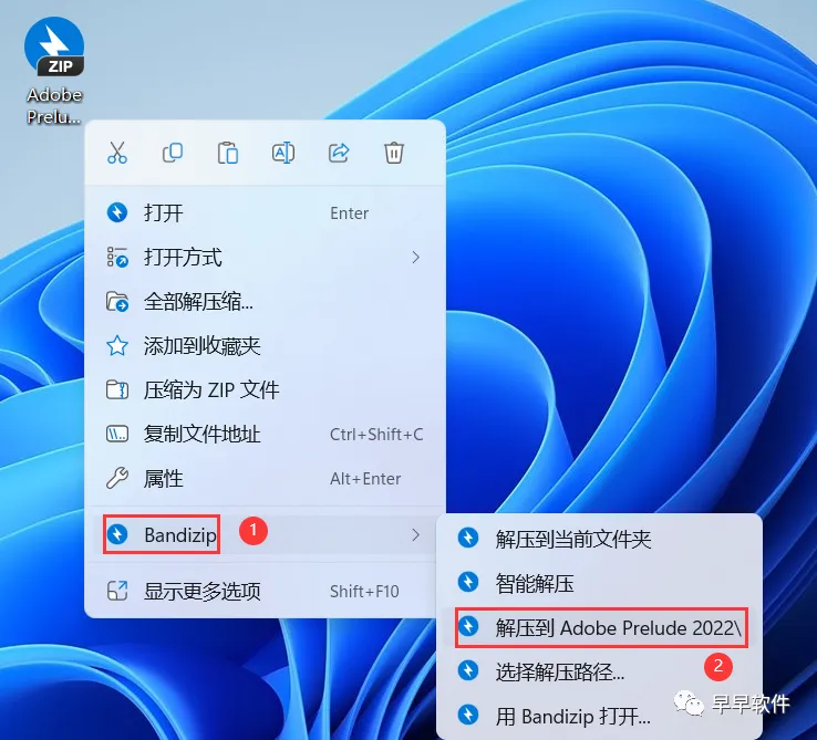 1、下载Adobe Prelude 2022软件安装包到电脑上,右键选择【解压到Adobe Prelude 2022\】