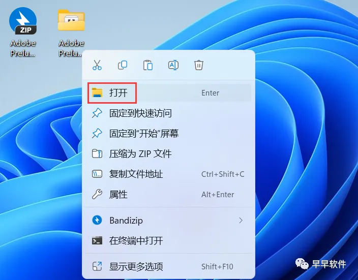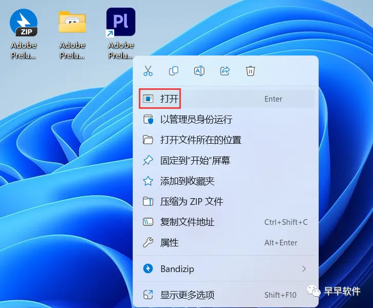 7、回到桌面,右键桌面上的【Adobe Prelude 2022软件图标】,点击【打开】