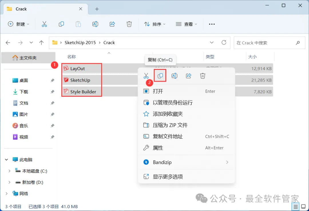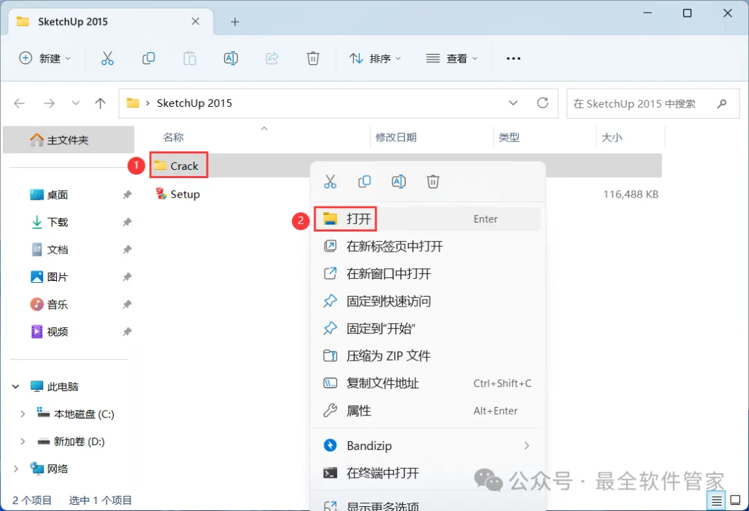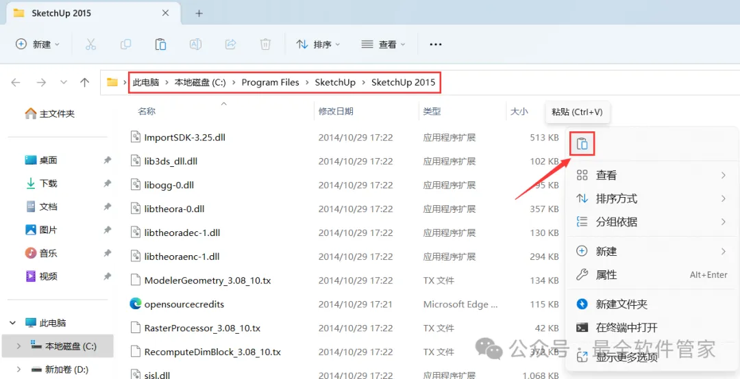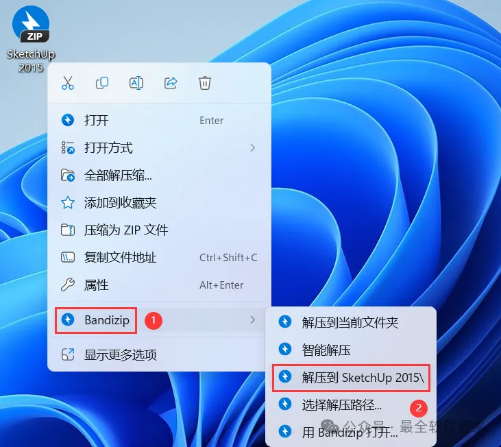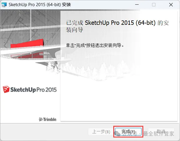 SketchUp 2015软件安装教程附安装包下载软件简介SketchUp 2015是一款功能强大的三维制图软件,软件有着面向设计方案创作过程的设计工具,它被适用于建筑,规划,园林,景观,室内等工作领域,同时软件,具有草稿,线稿,透视,渲染等不同显示模式,满足所有用户的设计需求。草图大师可以快速和方便的进行三维设计,它还提供了丰富免费的在线素材和设计方案交流平台,创作过程可以与与客户即时交流的需要,它使得设计师可以直接在电脑上进行十分直观的构思,是三维建筑设计方案创作的优秀工具。安装需知[软件名称]:SketchUp 2015[软件大小]:129MB[软件语言]:中文简体[安装环境]:Win7及以上版本[下载地址]:公众号内回复:SketchUp[不限速下载]:免费获取百度网盘不限速下载工具。公众号内回复:不限速[注意事项]:安装前请关闭网络、杀毒软件和防火墙,否则易安装失败。公众号内回复:1[解压软件]:小编用的解压软件是Bandizip,获取Bandizip软件安装包。公众号内回复:2安装教程1、下载SketchUp 2015软件安装包到电脑上,右键选择【解压到SketchUp 2015\】2、右键【打开】解压后的文件夹 3、找到【Setup】应用程序,右键选择【以管理员身份运行】它4、点击【下一个】 5、勾选【我接受】,再点击【下一个】6、点击【下一个】7、点击【安装】 8、软件安装中,稍等片刻9、软件安装成功,点击【完成】10、回到SketchUp 2015文件夹,找到【Crack】文件夹,右键【打开】它11、选中全部文件,再右键点击【复制按钮】12、回到桌面,右键桌面上的【SketchUp 2015软件图标】,点击【打开文件所在的位置】13、右键文件夹的空白处,点击【粘贴按钮】14、点击【替换目标中的文件】15、勾选【为所有…】,再点击【继续】 16、回到桌面,右键桌面上的【SketchUp 2015软件图标】,点击【打开】17、依次点击【选择模板】、【简单模板】,再点击【开始使用SketchUp】 18、软件打开成功,运行界面如下:19、以上就是SketchUp 2015软件安装的全过程,要是对你有帮助的话,请为小编点个赞! 免责声明:软件资源均来源于网络,仅供用户交流学习与研究使用,版权归属原版权方所有,版权争议与本公众号无关,用户本人下载后不能用作商业或非法用途,否则后果均由用户承担责任;如果您访问和下载此文件,表示您同意只将此软件用于参考、学习而非其他用途,否则一切后果请您自行承担,请于下载后24小时内删除,不允许用于商业用途,否则法律问题自行承担。如果您喜欢该软件,请支持正版软件,购买注册,得到更好的正版服务。