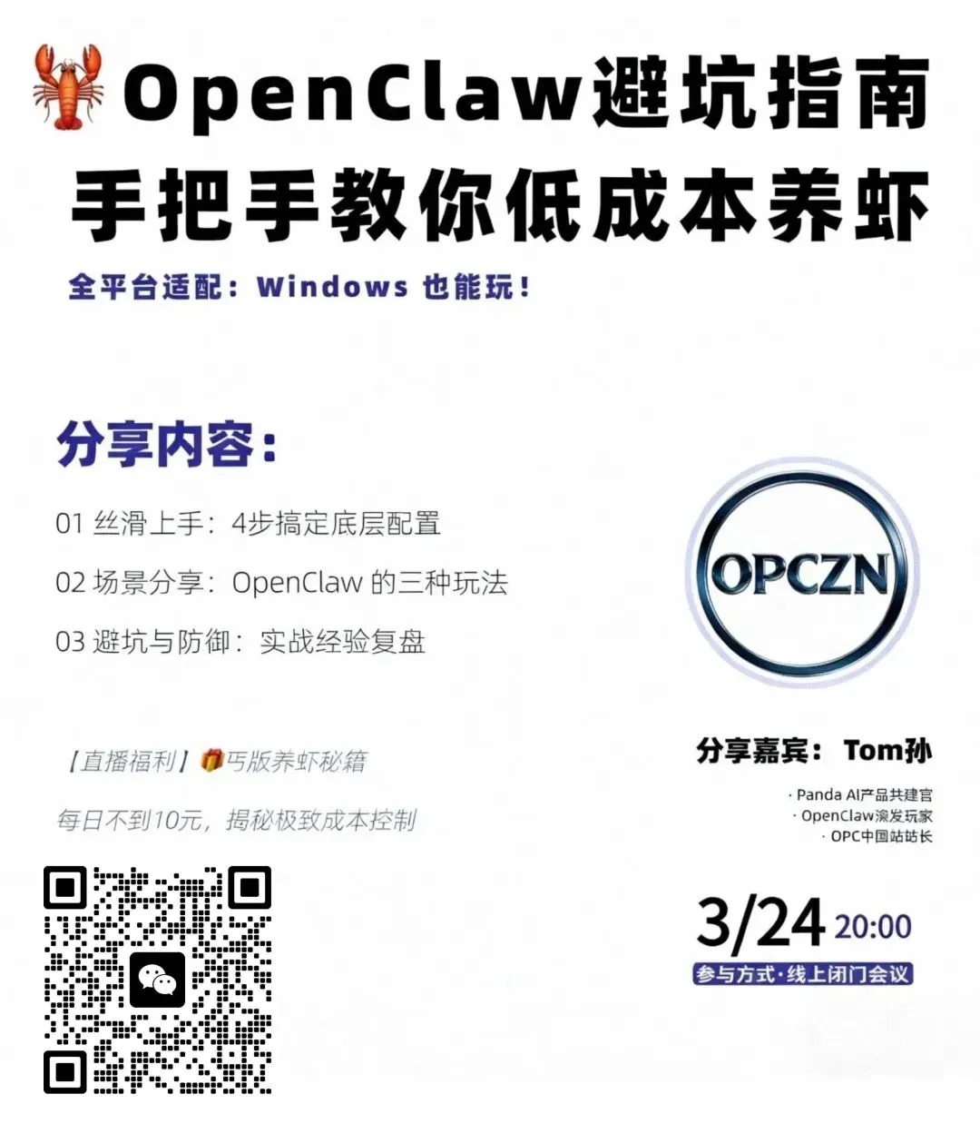 作为国内最早一批“养虾人”,Tom孙将OpenClaw实战经验浓缩于本场讲座中,带你系统入门、高效避坑,把「养虾」门槛打下来!