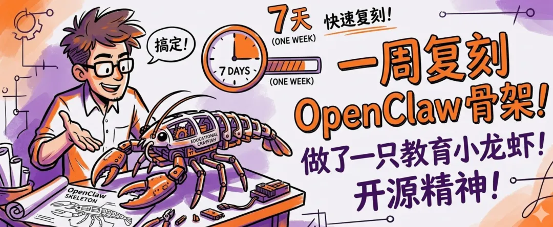 摘要: OpenClaw 的吉祥物是一只红色小龙虾,它近百万行代码、50+ 集成,六个月成为 GitHub 最热 AI 开源项目之一。但剥掉所有外围功能后,真正撑起整个系统的只有五个组件——我花了一周时间复刻这副骨架,在上面长出了一只面向教育场景的"小龙虾"。本文用真实代码把五个核心组件讲透,从 Config 到 Tool Loop,从 ReAct 论文到课堂可演示的本地 Agent,最后展示这副骨架如何直接映射到教育 AI 产品的架构设计。
