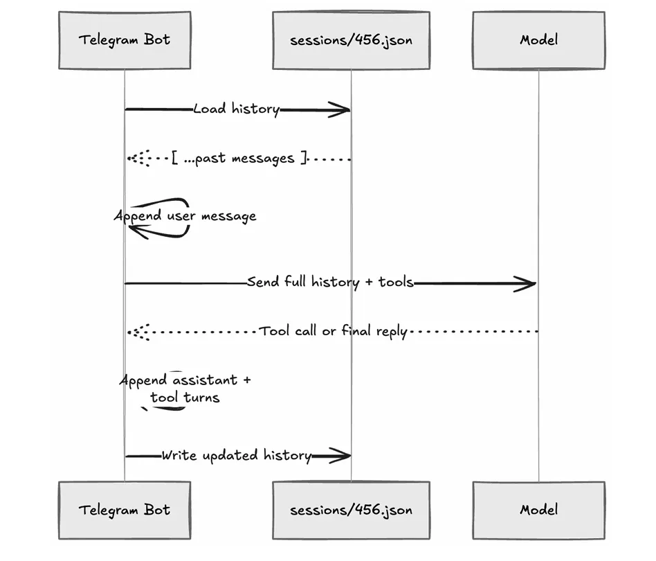Session Store 的职责:把每个用户的上下文历史稳定地存下来,在下一轮继续带回给模型。