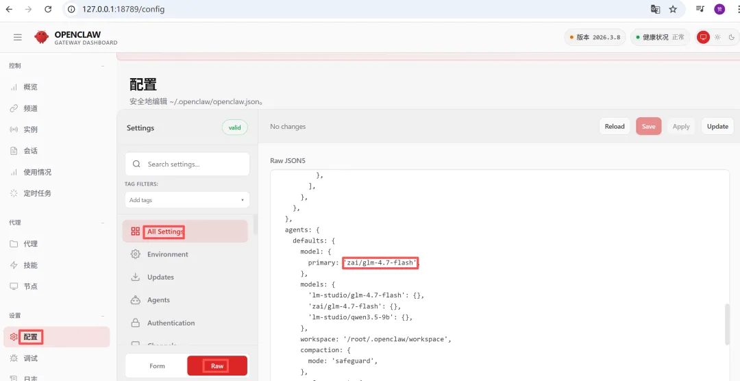 在primary处填写:zai/glm-4.7-flash