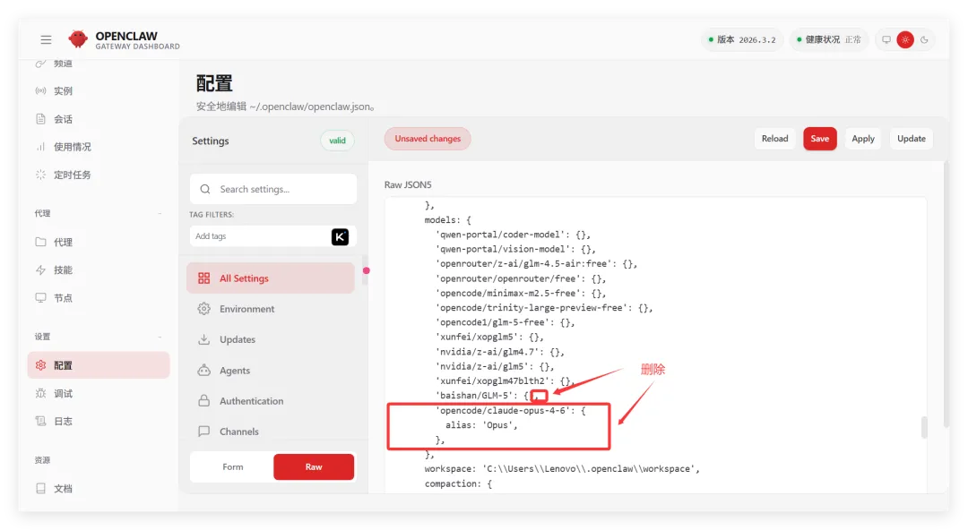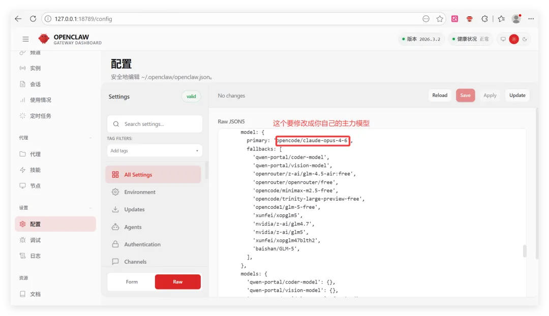 这个文件也是的OpenClaw的总配置文件,所有的设置都在这个文件里。