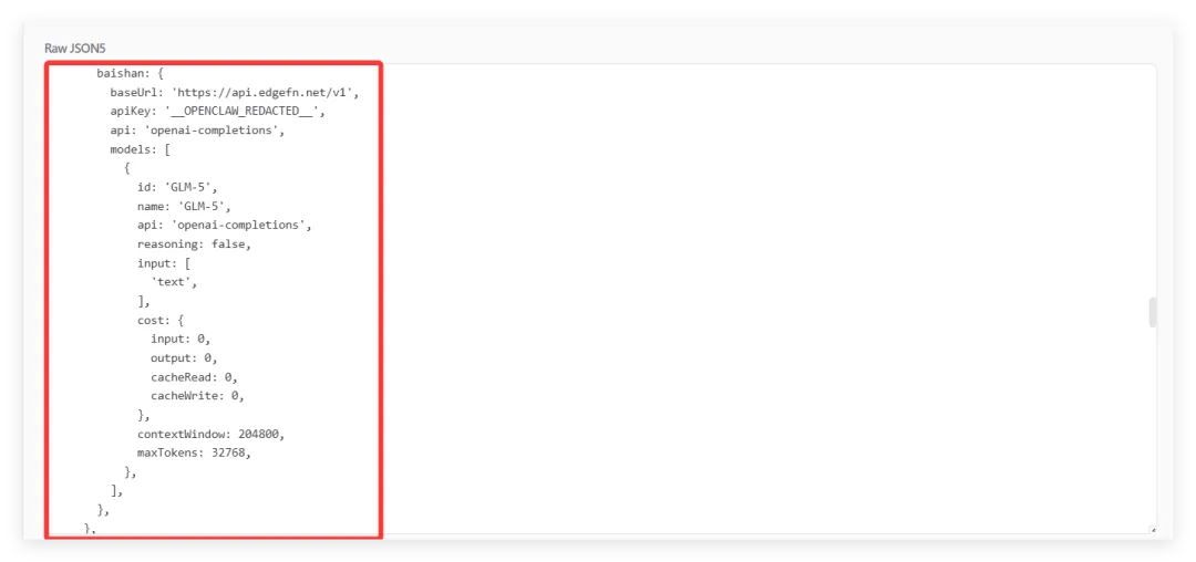 第二种直接编辑openclaw.json,适合其它没有内置到openclaw的模型的配置。