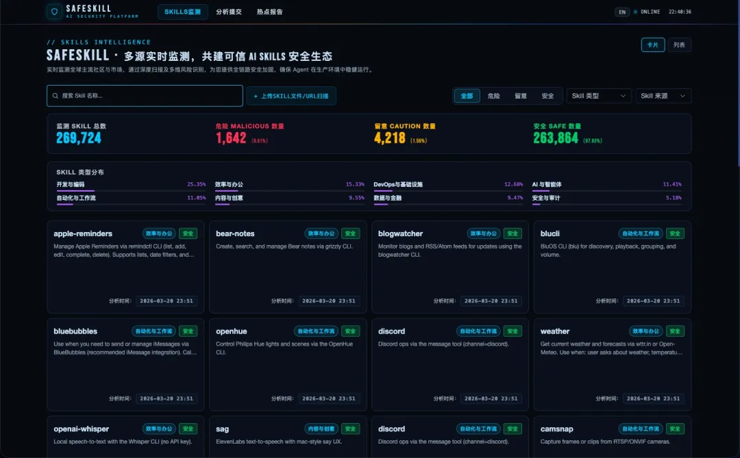 SAFESKILL 是一个安全 Skills 应用平台。如果按照我在文章开头讲的:OpenClaw 的生态结构中Agent 相当于操作系统,Skills 相当于应用,Skills 商店相当于 AppStore,那么 SAFESKILL 本质上是安全版 AppStore。这对企业用户非常有用,给企业用户提供了稳定安全的 Skills 下载入口。