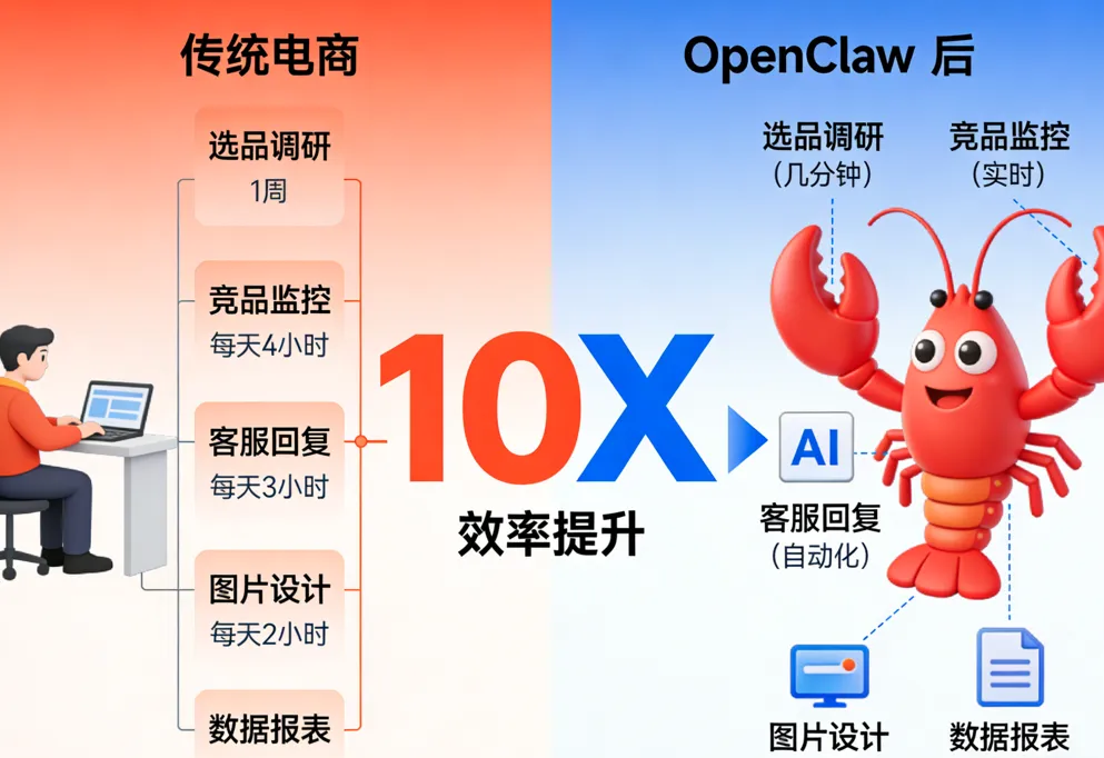 每天花多少时间在重复性回复客服消息上? 每周花多少精力盯着竞品的价格和上新? 每月花多少人力在批量上架商品、写文案、做图上?