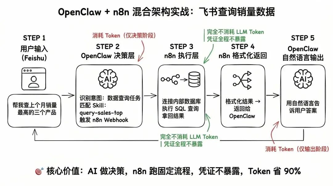 n8n 把脏活干完,OpenClaw 只负责最后的"临门一脚",Token 消耗直接砍掉一大半。