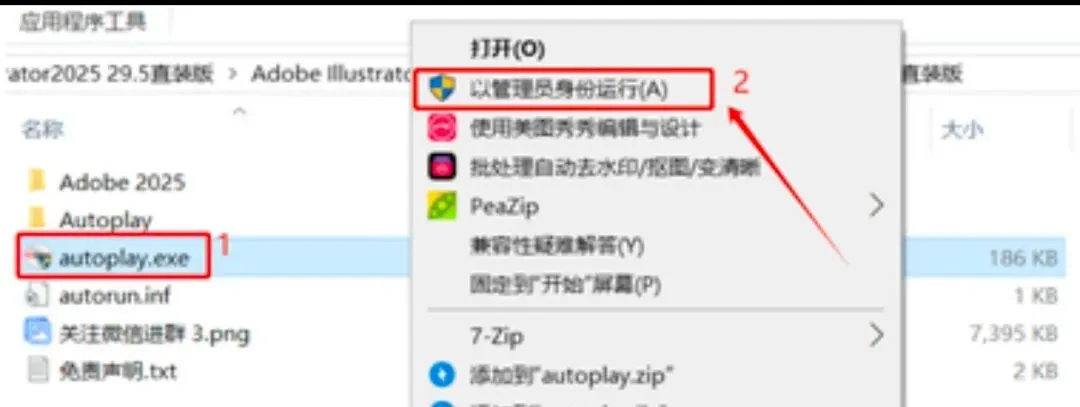 🔹打开文件夹,找到【autoplay.exe】,鼠标右键选择【以管理员身份运行】