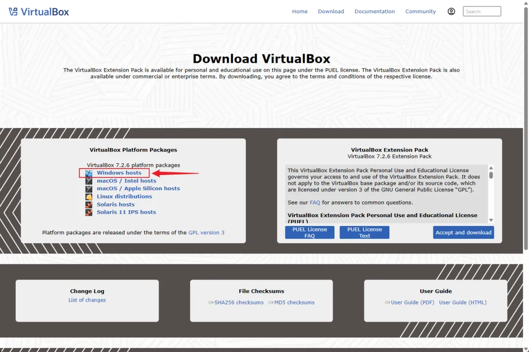官网 virtualbox.org → 点"Download" → 选"Windows hosts"。