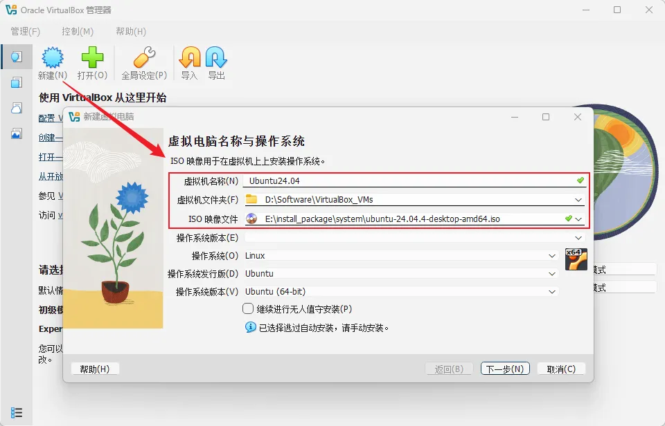 • 关键一步:取消勾选"继续进行无人值守安装"(我们要手动装,更可控)