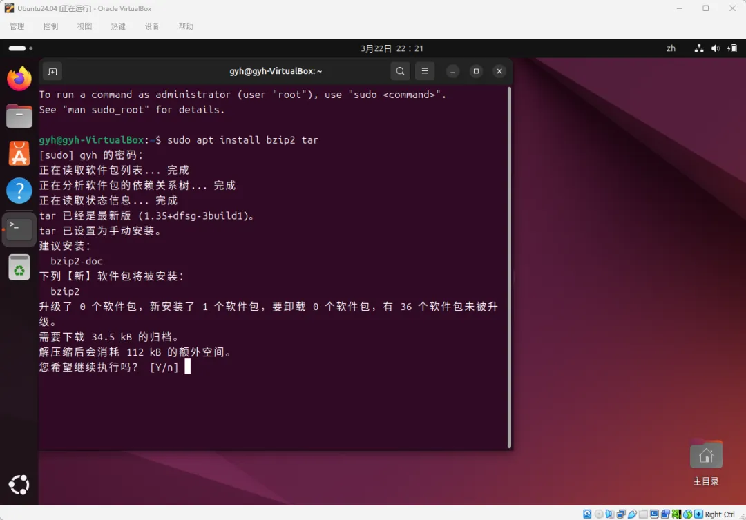 回车,输入你的密码(输的时候屏幕不显示,正常),然后输入 y 回车确认。