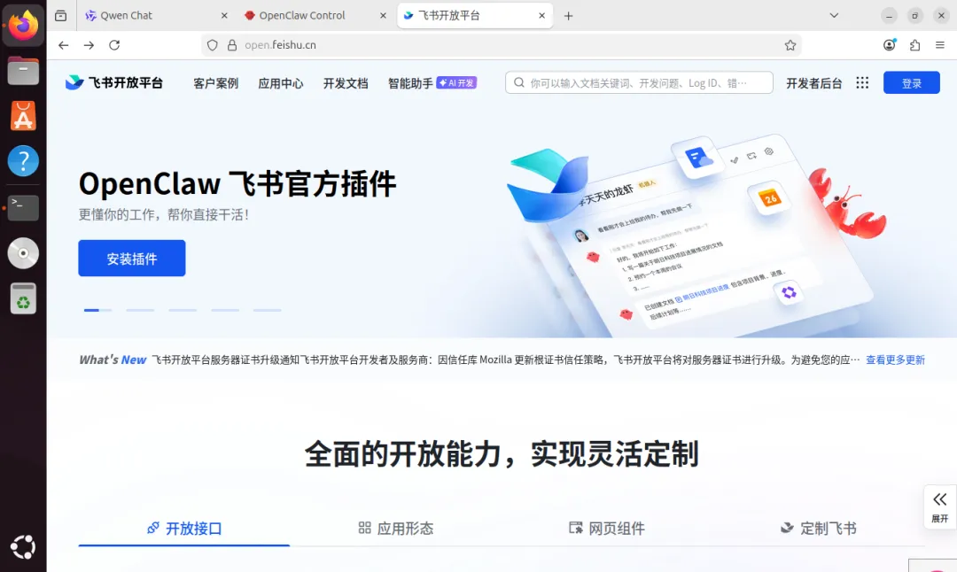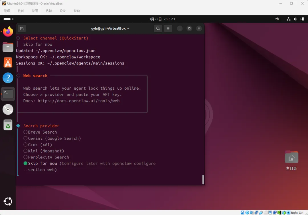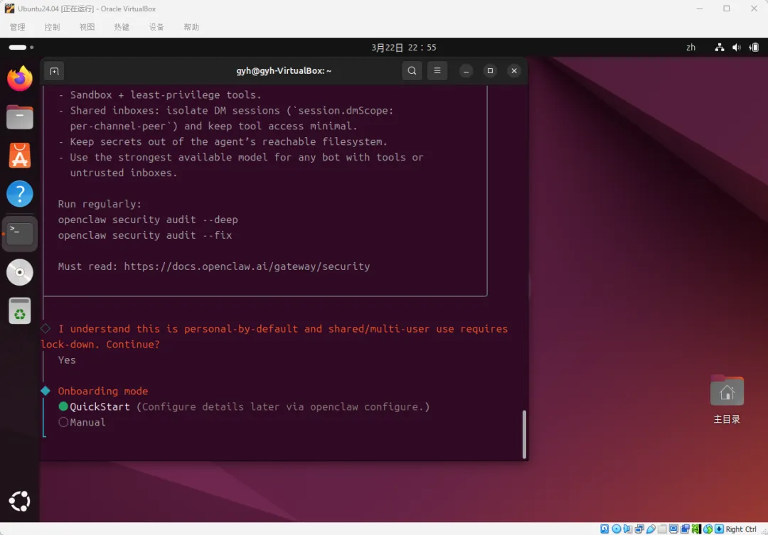 重启进入Ubuntu桌面后,我们开始安装OpenClaw。
