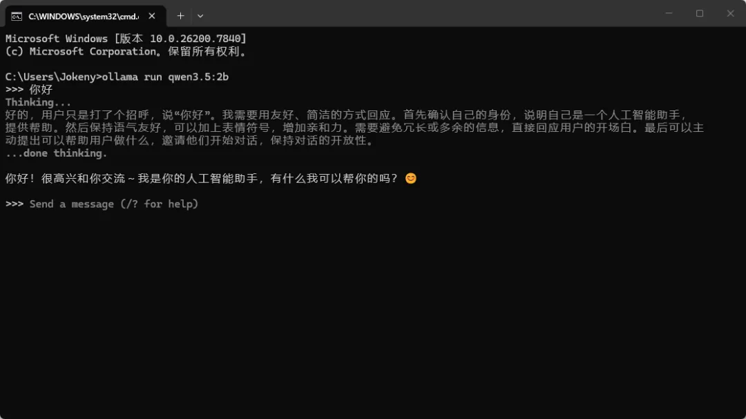等待一会后,我们再输入第二行命令