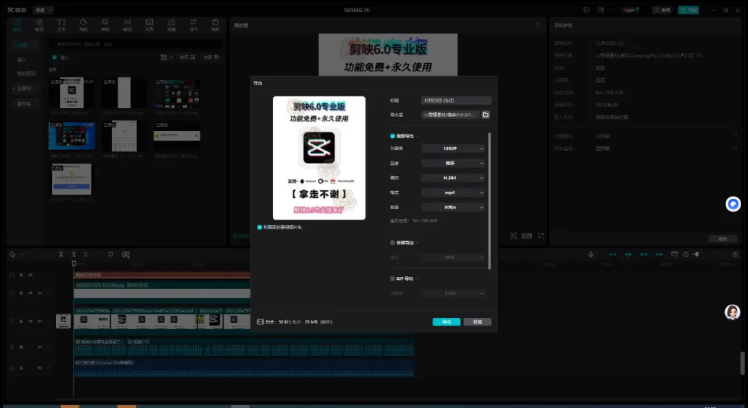 剪映9.4全功能版、免费剪辑软件、手机电脑双端剪辑、无水印高清导出、免会员剪辑工具、短视频剪辑神器