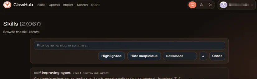 ClawHub 公共技能市场的 Skill 数量早已突破 27000 个,开发者们争相上传各类技能,搜索、浏览器操控、文档处理等品类卷到极致。