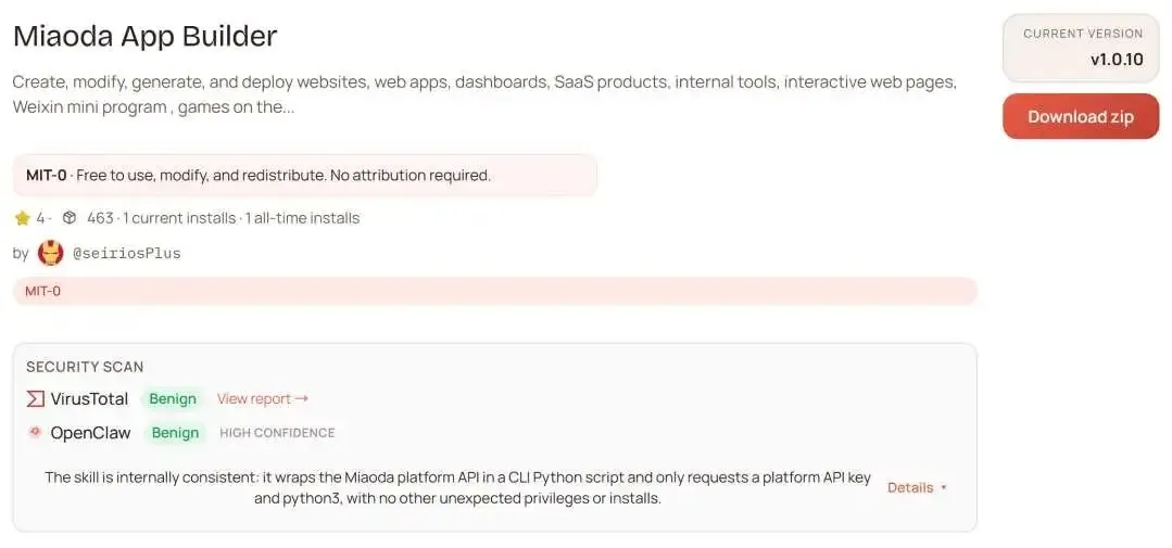 百度秒哒推出的 Miaoda App Builder 正式上架 ClawHub,这是全球首个将完整应用开发能力封装为 Skill 的技能包。