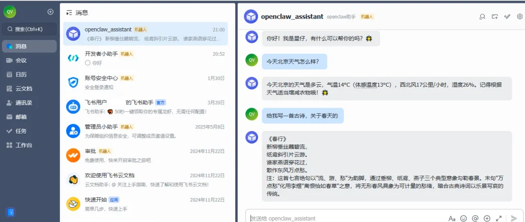 飞书聊天界面如下: