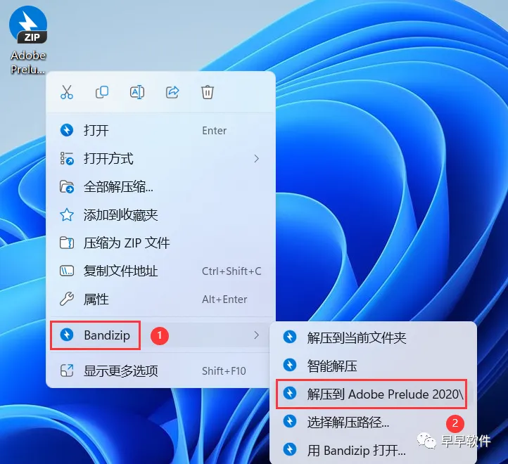 1、下载Adobe Prelude 2020软件安装包到电脑上,右键选择【解压到Adobe Prelude 2020\】