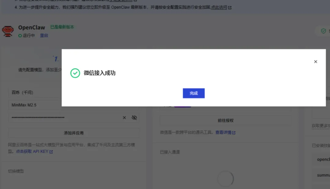 进入OpenClaw的配置面板,在"通道卡片"中选择"微信",随后点击"前往授权"。
