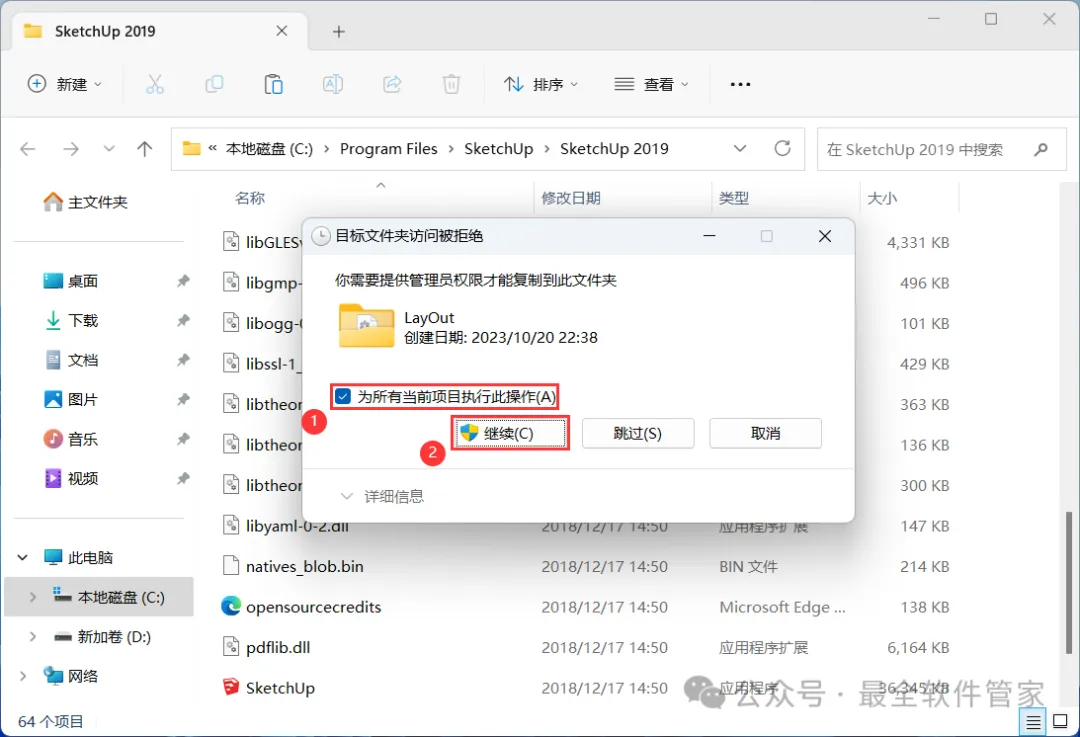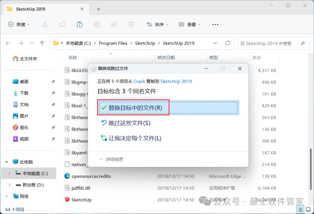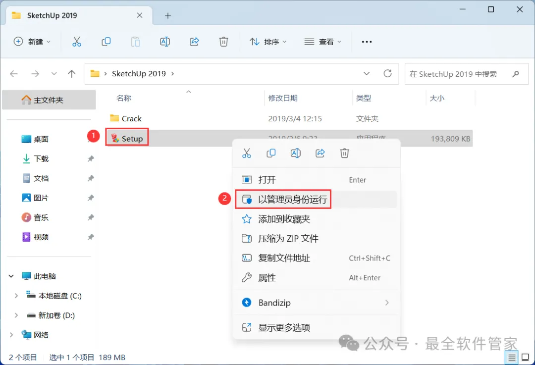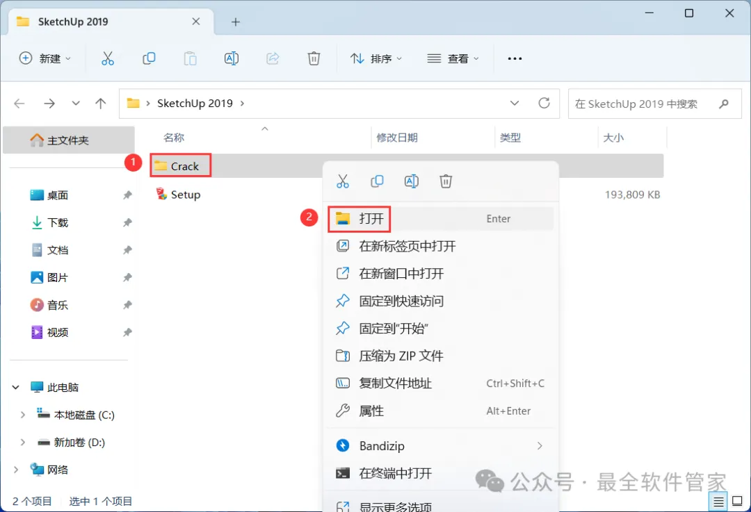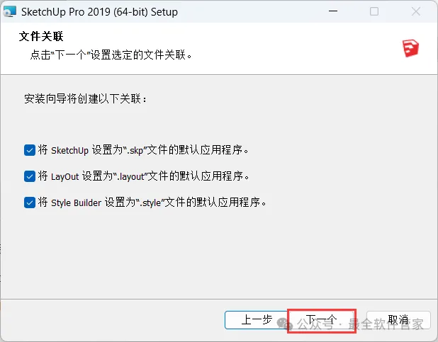 SketchUp 2019软件安装教程附安装包下载软件简介SketchUp 2019是一款功能强大的三维制图软件,软件有着面向设计方案创作过程的设计工具,它被适用于建筑,规划,园林,景观,室内等工作领域,同时软件,具有草稿,线稿,透视,渲染等不同显示模式,满足所有用户的设计需求。草图大师可以快速和方便的进行三维设计,它还提供了丰富免费的在线素材和设计方案交流平台,创作过程可以与与客户即时交流的需要,它使得设计师可以直接在电脑上进行十分直观的构思,是三维建筑设计方案创作的优秀工具。安装需知[软件名称]:SketchUp 2019[软件大小]:211MB[软件语言]:中文简体[安装环境]:Win7及以上版本[下载地址]:公众号内回复:SketchUp[不限速下载]:免费获取百度网盘不限速下载工具。公众号内回复:不限速[注意事项]:安装前请关闭网络、杀毒软件和防火墙,否则易安装失败。公众号内回复:1[解压软件]:小编用的解压软件是Bandizip,获取Bandizip软件安装包。公众号内回复:2安装教程1、下载SketchUp 2019软件安装包到电脑上,右键选择【解压到SketchUp 2019\】2、右键【打开】解压后的文件夹 3、找到【Setup】应用程序,右键选择【以管理员身份运行】它4、点击【安装】 5、点击【下一个】6、点击【下一个】 7、点击【下一个】8、点击【安装】9、软件安装中,稍等片刻 10、软件安装成功,点击【完成】11、回到SketchUp 2019文件夹,找到【Crack】文件夹,右键【打开】它12、选中全部文件,再右键点击【复制按钮】13、回到桌面,右键桌面上的【SketchUp 2019软件图标】,点击【打开文件所在的位置】 14、右键文件夹的空白处,点击【粘贴按钮】15、点击【替换目标中的文件】 16、勾选【为所有…】,再点击【继续】17、回到桌面,右键桌面上的【SketchUp 2019软件图标】,点击【打开】 18、勾选【我同意】,再点击【继续】 19、点击【开始建模】 20、点击【简单模板按钮】21、软件打开成功,运行界面如下: 22、以上就是SketchUp 2019软件安装的全过程,要是对你有帮助的话,请为小编点个赞!免责声明:软件资源均来源于网络,仅供用户交流学习与研究使用,版权归属原版权方所有,版权争议与本公众号无关,用户本人下载后不能用作商业或非法用途,否则后果均由用户承担责任;如果您访问和下载此文件,表示您同意只将此软件用于参考、学习而非其他用途,否则一切后果请您自行承担,请于下载后24小时内删除,不允许用于商业用途,否则法律问题自行承担。如果您喜欢该软件,请支持正版软件,购买注册,得到更好的正版服务。