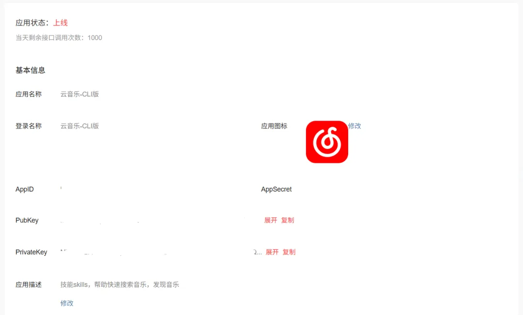 网易云音乐已开放 CLI 与 Skills 接入,完成开放平台配置后即可使用,默认调用额度为 1000 次。