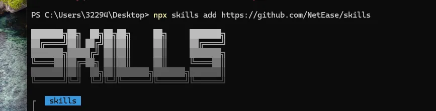 npx skills add https://github.com/NetEase/skillsln -s $(pwd)/skills/netease-music-cli ~/.openclaw/skills/ln -s $(pwd)/skills/netease-music-assistant ~/.openclaw/skills/