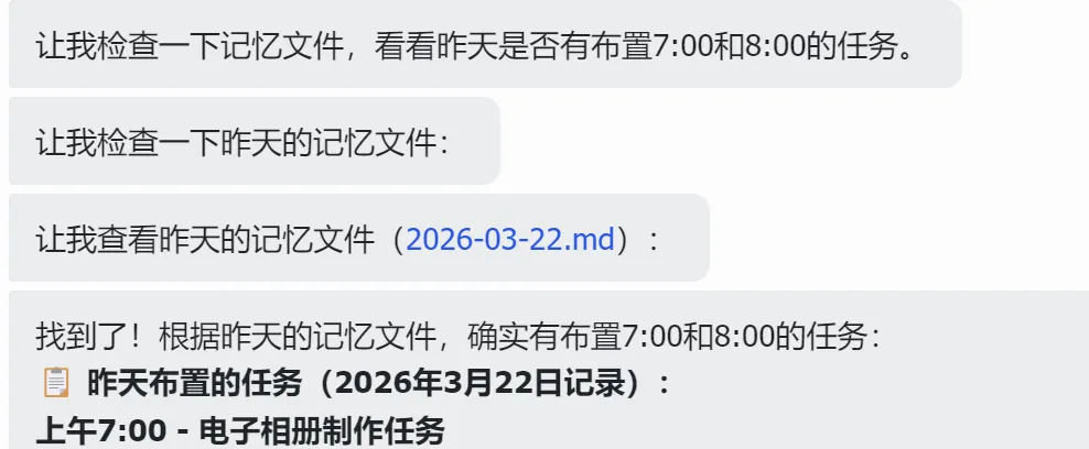 然而,在飞书机器人接入后,许多用户发现了一个长期困扰他们的问题——机器人没有隔天记忆。每天早上,机器人就像是失忆了一样,完全忘记昨天发生了什么。更重要的是,定时任务和日程提醒也无法正常工作,说好的"明天提醒我开会",第二天却杳无音信。