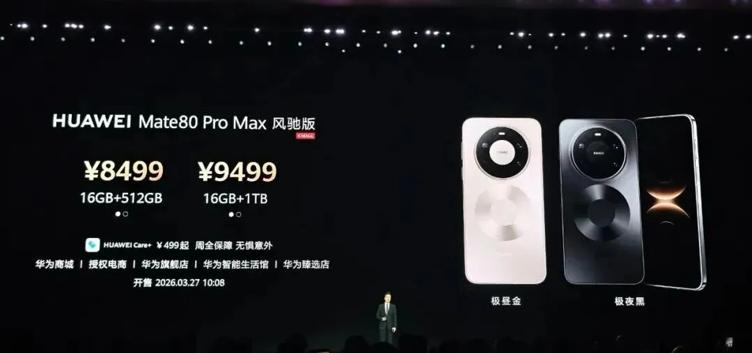 价格方面,Mate 80 Pro Max风驰版推出16GB+512GB、16GB+1TB两个版本,售价分别为8499元、9499元。