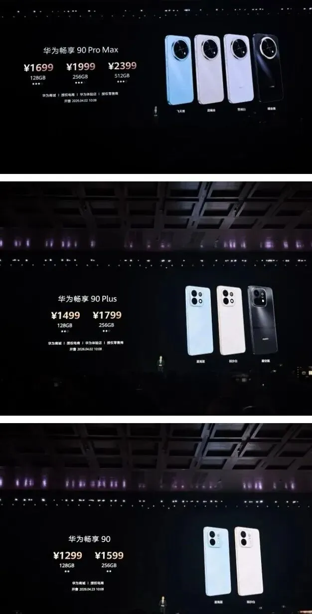 畅享90 Pro Max提供128GB、256GB、512GB版本,售价分别为1699元、1999元、2399元;
