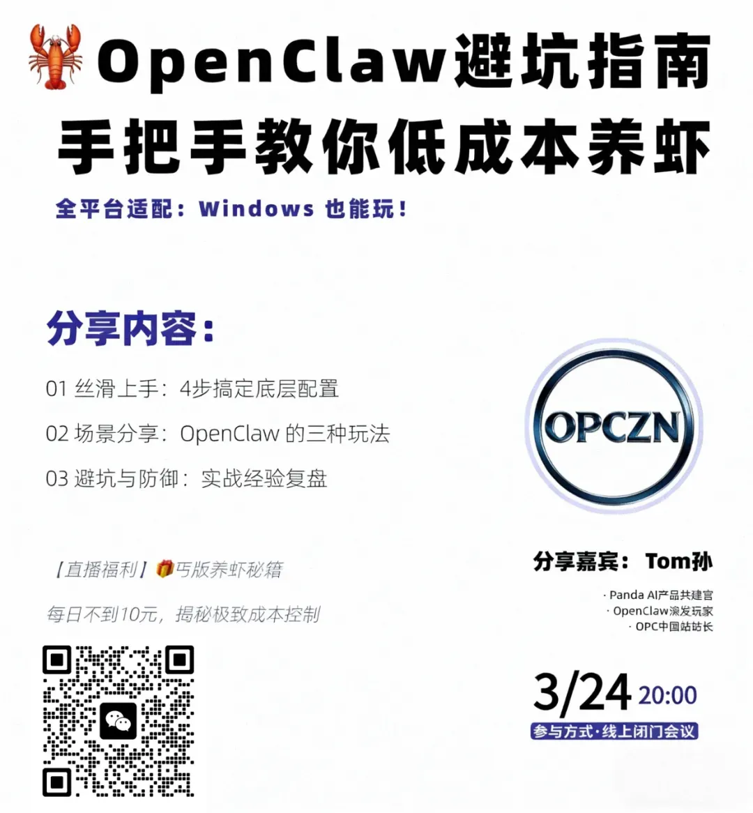 作为国内最早一批“养虾人”,Tom孙将OpenClaw实战经验浓缩于本场讲座中,带你系统入门、高效避坑,把「养虾」门槛打下来!