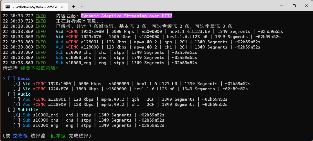 并发下载多轨道:视频、音频、字幕可以同时下,加 -mt参数开启,不用等视频下完再下音频。
