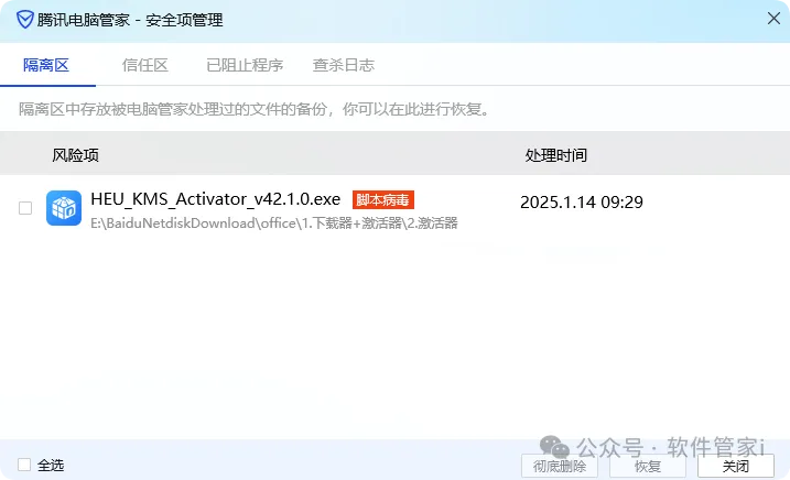 注意此时将触发防护措施,务必关闭所有安全软件。若出现拦截,请确认允许。若文件激活器被误删,请确保恢复。
