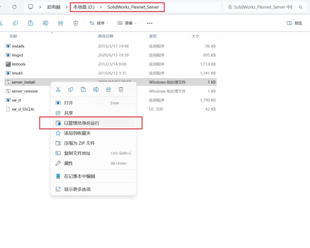 2.1粘贴到盘符根目录下,打开文件夹,鼠标右键“server install”以管理员身份运行
