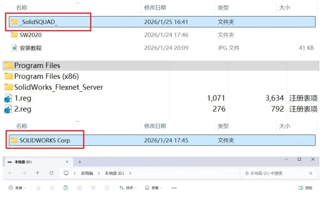 6.Ctrl+C复制下图第2个红色框文件夹,Ctrl+V粘贴到SW安装目录