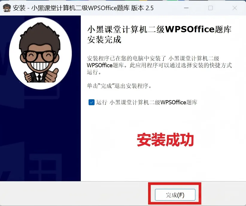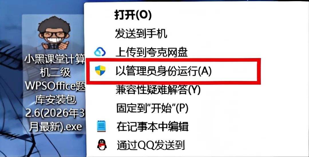 (注:以下是WPS office安装过程;MS office与WPS安装过程相同,只是安装包不一样,上面链接分享的是MS office安装包,放心安装即可)2、下载完成后,【以管理员身份】运行安装包,进入安装引导界面。6、安装完成,点击完成即可运行题库软件(桌面也会显示题库软件的图标)。7、进入题库软件的主页,点击右下角“专项训练”、“综合训练”和“模拟考试”即可练题。练题、模拟考试、评分功能都有。总资源:我用夸克网盘给你分享了「计算机二级MS题库软件(2026年最新)」链接:https://pan.quark.cn/s/60f873f7e253领取方式: