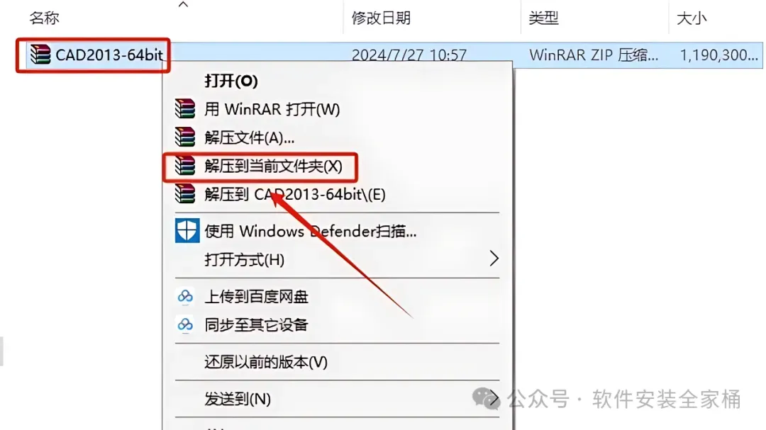 1.打开下载好的软件安装包,鼠标右击软件压缩包,选择【解压到当前文件夹】。