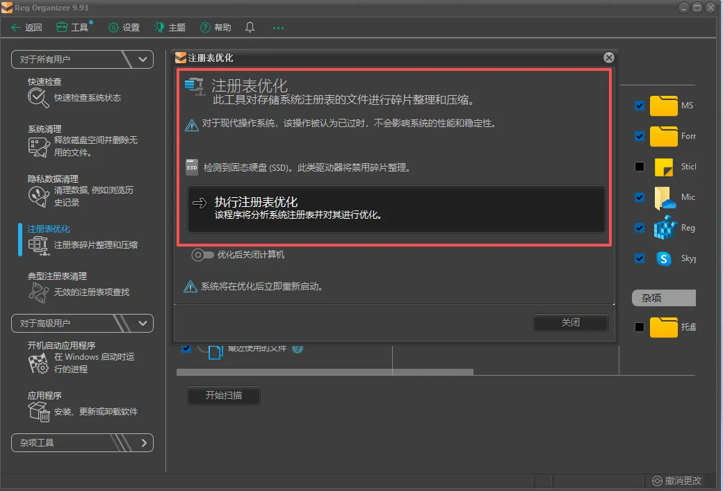 清理完注册表之后,你会发现系统的响应速度明显变快了,卡顿也少了。而且它还不仅仅是清理,还能帮你做系统优化,比如加速网络连接、加快开机与关机速度、甚至是优化SSD的性能,这些平时需要懂点技术才能调整的设置,现在只需要点一下“优化”,它就能自动帮你配置好,特别的实用。
