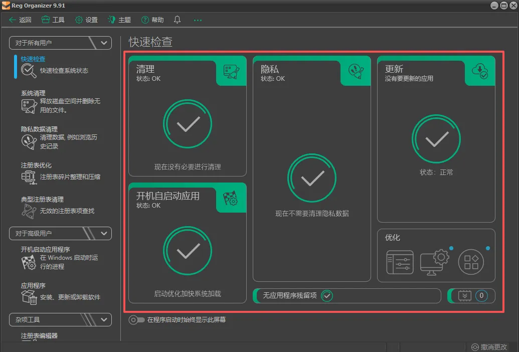 这款软件叫Reg Organizer,在系统优化领域也是老牌劲旅了。这次给大家找来的是便携版,不用安装,解压就能用,没有任何广告,也不会往你的系统里乱写东西。它不仅能深度清理注册表,还能优化系统设置,提升开机速度,平时觉得电脑卡顿或者有强迫症的朋友,可以好好利用一下,系统优化也可以很简单。(下载方式详见文末)