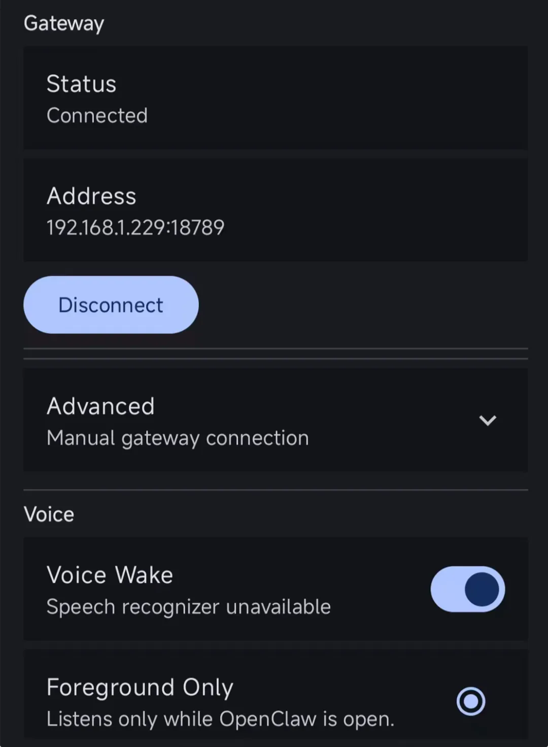 为了解决这些需求,OpenClaw 引入了Node(远程节点)的概念。可以把 Node 理解为 OpenClaw 向外延伸的“四肢”。远程的 Mac 笔记本、Linux 服务器、iPhone、Android 设备等,都可以作为 Node 接入系统,并向 Agent 提供不同的能力。比如小编将一台 Android 设备通过App接入了Gateway:从设备发现到建立连接,再到执行远程工具,交互流程如下:- 能力声明:新 Node 首次连接时,需要人工审批才能被信任;连接时必须告诉 Gateway 自己支持哪些命令和能力 — 也是后续工具安全的校验依据