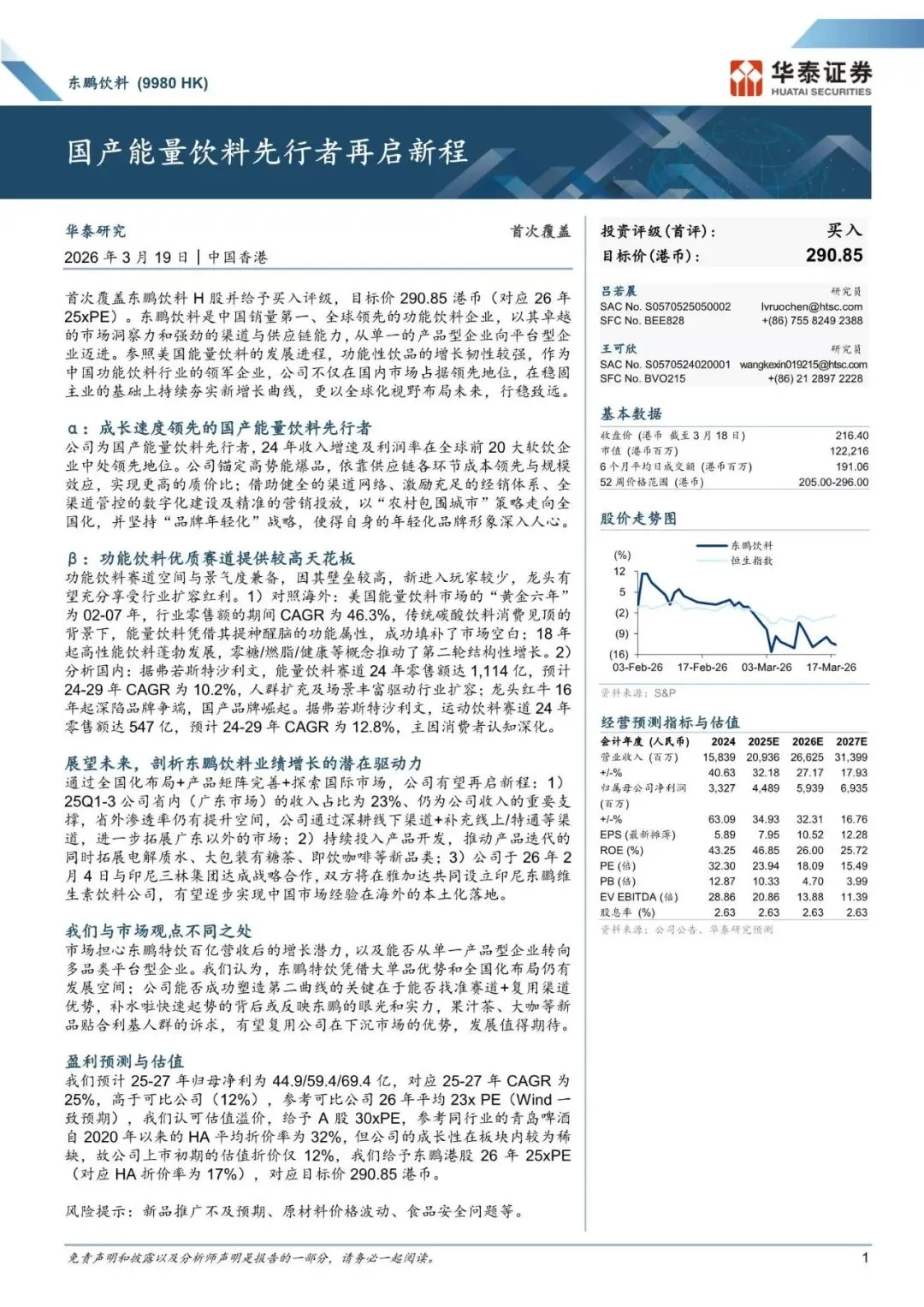 回复暗号:东鹏饮料(9980.HK)国产能量饮料先行者再启新程-260319-华泰证券-37页