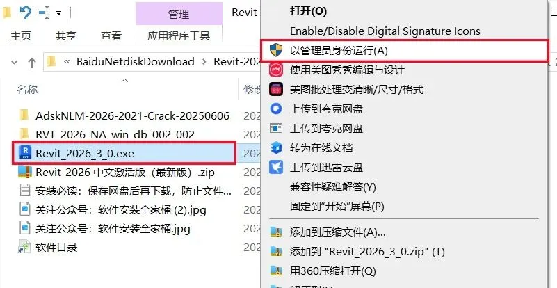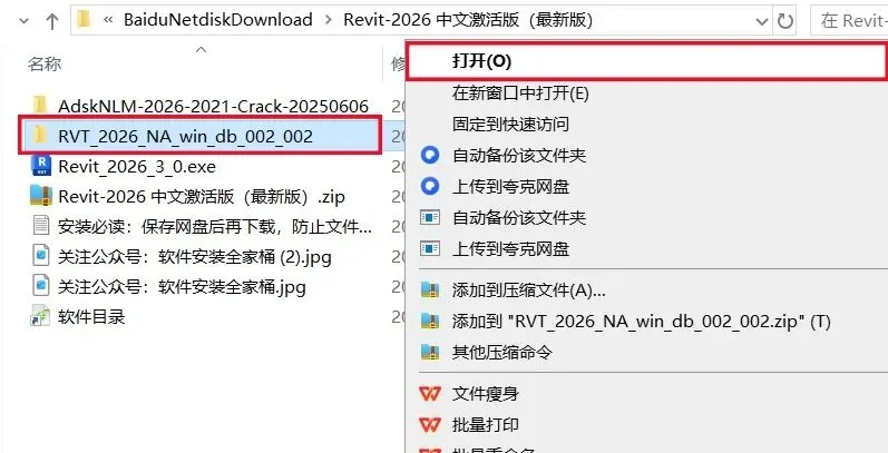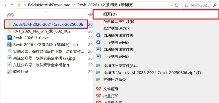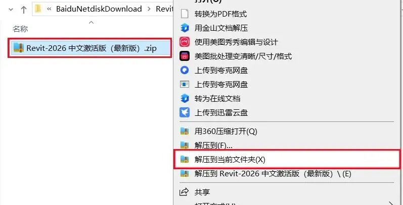 1、下载Revit 2026软件安装包到电脑上,右键选择【解压到当前文件夹】。