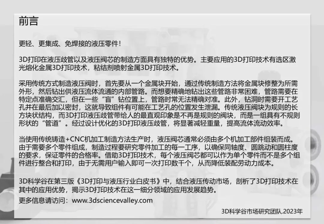 此外,钻洞时需要开工艺孔并在最后加以密封,这就导致组件有可能在工艺孔的位置发生世漏。传统液压阀块为规则的长方块状结构,而3D打印液压歧管带给人的最直观印象是不再是规则的阀块,而是一组具有不规则形状的"管道"。经过设计优化的3D打印液压歧管,将显著减轻重量,提高流体流动效率。