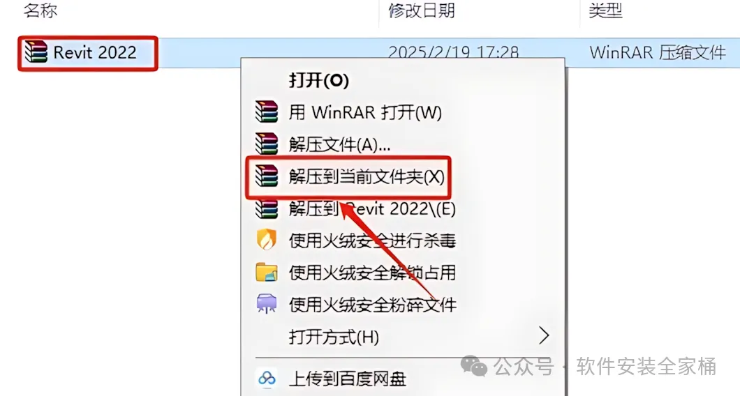 1.打开下载的Revit软件安装包,鼠标右击压缩包选择【解压到当前文件夹】。