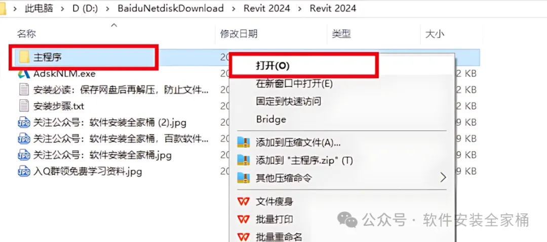 1.打开下载的Revit软件安装包,鼠标右击压缩包选择【解压到当前文件夹】。