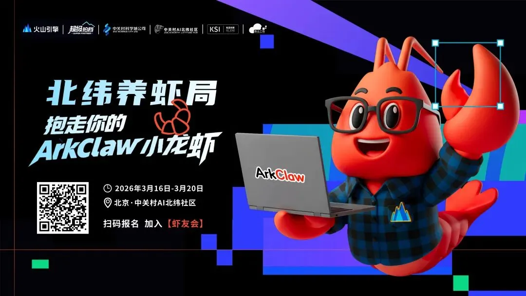 最近AI圈最火的是什么?当然是OpenClaw!现在!不用啃文档,不用踩坑。中关村AI北纬社区联合火山引擎举办🦞北纬养虾局!OpenClaw实操沙龙,直接把火山引擎ArkClaw核心团队请到现场,3小时从零跑通生产级AI Agent,还有福利周边拿到手软!