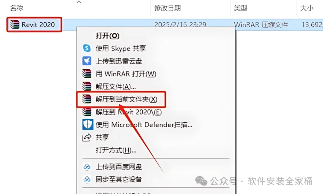 1.打开下载的Revit软件安装包,鼠标右击压缩包选择【解压到当前文件夹】。